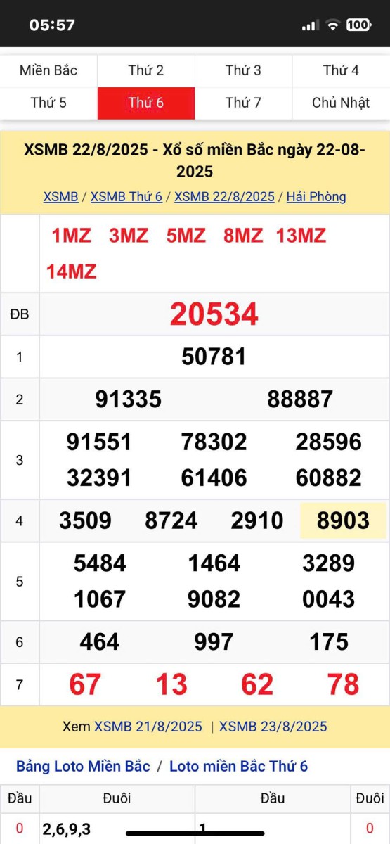 Sáng ngày 29/8/2025, tại trụ sở Công ty TNHH một thành viên Xổ số kiến thiết Hải Dương, địa chỉ số nhà 45, đường Trần Hưng Đạo, phường Hải Dương, thành phố Hải Phòng, Công ty đã tổ chức trao thưởng giải đặc biệt và giải khuyến khích của giải đặc biệt Xổ số kiến thiết miền Bắc, vé mở thưởng ngày 22/8/2025, vé mang từ ký hiệu 1MZ đến 15MZ, với tổng giá trị 3.225.600.000 đồng, khách hàng may mắn đã trúng thưởng có địa chỉ thường trú tại xã Nguyên Giáp, thành phố Hải Phòng.