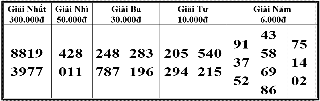 Theo biên bản mở thưởng ngày  30  tháng  12  năm 2025 - Tại Công ty TNHH MTV