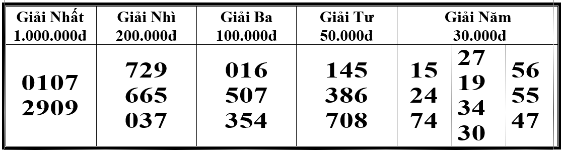 của giải đặc biệt mỗi giải 30.000đ:  77 - 28